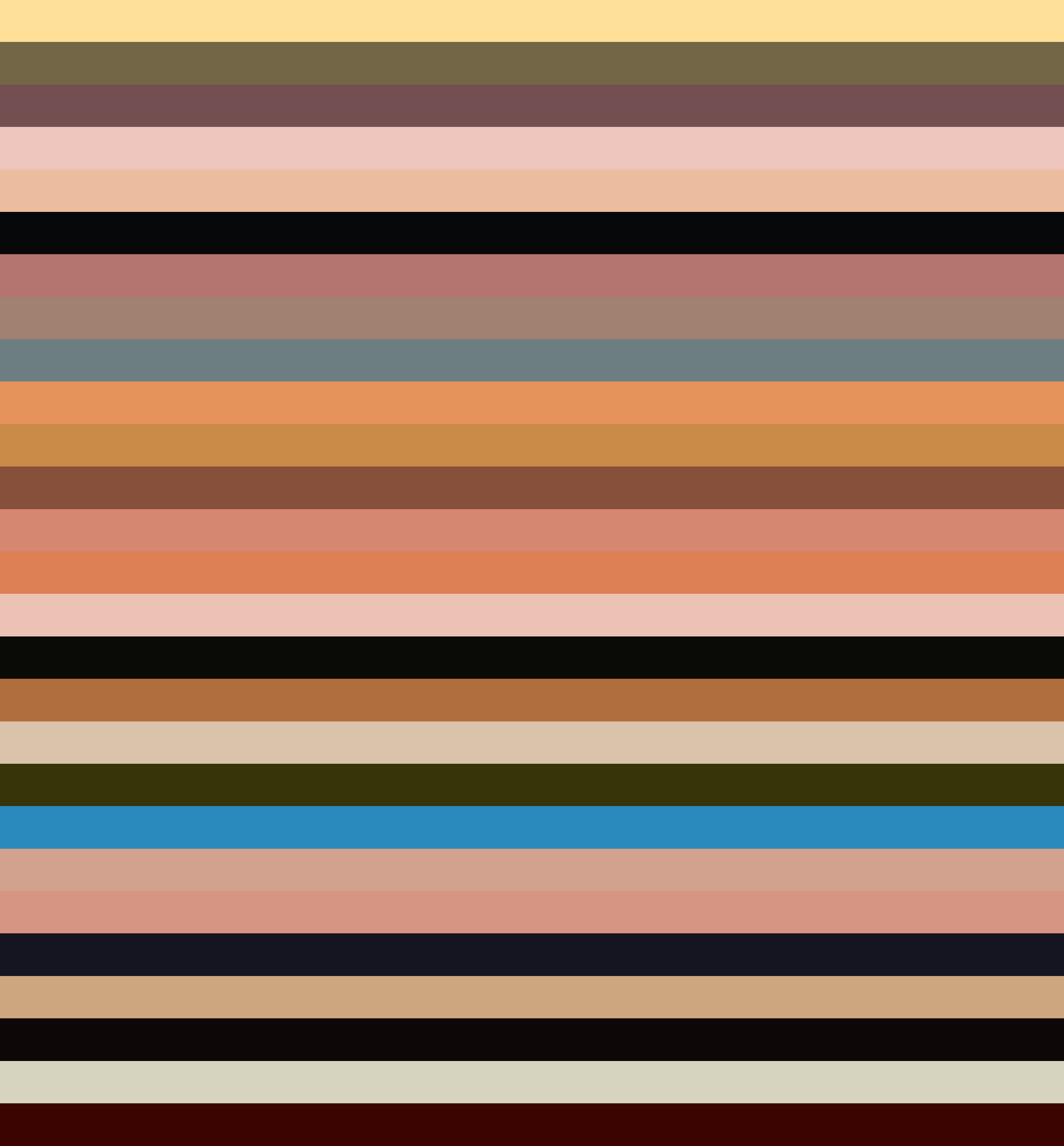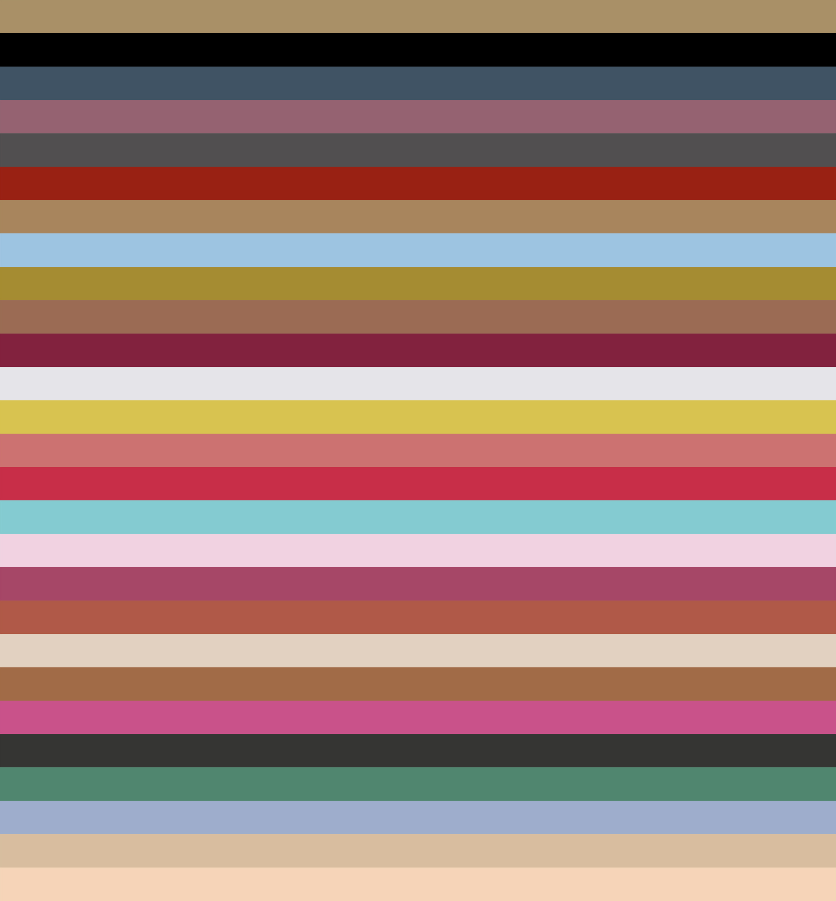 In her series 27, Tracey samples the central pixel of the 27 most Googled colour photographs of members from the 27 Club. These colour samples are then presented as stripes to form a colour palette, acting as a kind of non-traditional portrait.